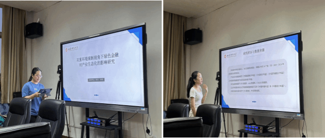 2024年9月11日晚,太阳集团tyc151cc2024-2025学年第1期学术沙龙活动在吴梦琪同学的主持下如期举行,本次沙龙的主题是“双重环境规制视角下绿色金融对产业生态化的影响研究”,由2023级金融学硕的高凡同学和李雯同学为大家作汇报讲解,本次沙龙有幸邀请到亢一鸣老师和马文婷老师作为讲评嘉宾,参加本次沙龙的是来自太阳集团tyc151cc2023级各专业的学生。