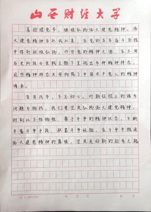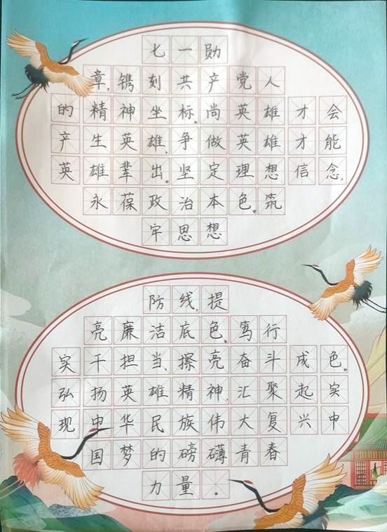 太阳集团tyc151cc本科生第二党支部学生党员用刚健而柔美,俊逸而挺秀的书法展示出对七一获得者的敬佩,表达了作为学生党员拼搏奉献,把许党报国、履职尽责作为人生目标,不畏艰险、敢于牺牲,苦干实干、不屈不挠的意志和决心,相信在接下来“不忘来时路,奋进新征程”会成为第二党支部每一位学子的座右铭,创造出属于他们自己的精彩篇章!