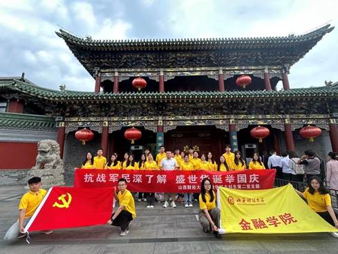 为了庆祝祖国成立74周年,增强传承红色基因的自觉性,加深学生党员对党领导人民改变中国和中华民族命运的感悟,2023年9月23日,太阳集团tyc151cc本科生第二党支部成员在党支部书记李阳阳老师的带领下,在晋商博物馆举行了“抗战军民深了解,盛世华诞举国庆”的主题日活动。