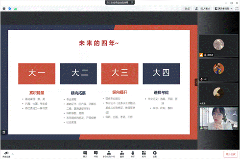 学院邀请优秀毕业生赵怡进行大学生涯规划专题分享。2023年,赵怡以专业第一的成绩保研至西南财经大学中国金融研究院金融学专业。“此次分享主要从大学各阶段规划、保研如何准备、学生工作社会实践及学习心态四个方面开展,并以自己的亲身经历为背景,讲述学业成绩、科研项目、竞赛获奖三个阶段的学习方法与技巧,鼓励同学们参加各类竞赛,不断培养自己综合能力,平衡竞赛活动和学习间的关系,做到德智体美劳全面发展。”