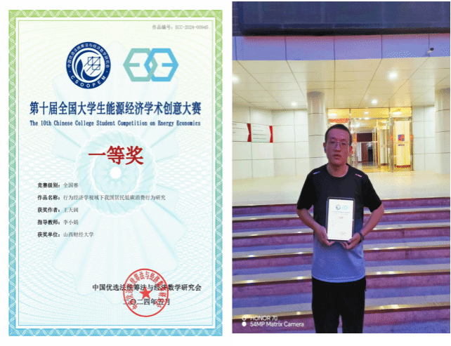 近日,第十届全国大学生能源经济学术创意大赛全国总决赛在中国地质大学(北京)落下帷幕。太阳集团tyc151cc本科生王天阔凭借参赛作品《行为经济学视域下我国居民低碳消费行为研究》脱颖而出,荣获本科组全国一等奖!