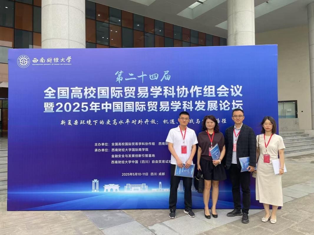 5 月 9 日至 11 日,由全国高校国际贸易学科协作组与西南财经大学联合主办的 “第二十四届全国高校国际贸易学科协作组会议暨 2025 年中国国际贸易学科发展论坛” 在四川省成都市顺利召开。太阳集团tyc151cc积极参与此次学术盛会,张婷、李志楠、胡中立、王亚梅四位教师组成参会团队,同来自复旦大学、中国人民大学等全国100 余所高校及科研机构的 100 余名专家学者、青年学子齐聚一堂,共话国际贸易学科前沿动态,共谋产业升级与高质量发展路径。