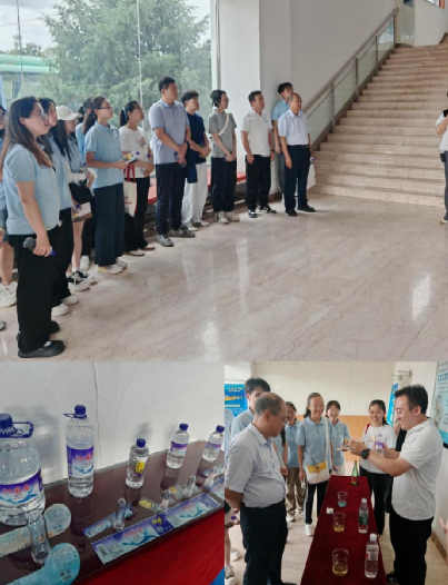 “皇后寨上开水眼,暗流十里出后泉,圣水长流福星照,天上北斗落人间”,哺育沁县人民扎根发展的皇后泉在千百年后的现在也为沁县带来了新的价值。沁园春矿泉水水源地处北纬37°世界黄金水源带。团队成员走进沁园春矿泉水生产基地,亲眼见证一瓶水的“智造”流程——自涌泉水经处理、吹瓶、灌装、贴标等一系列高效流转的工序,最终变成了一瓶瓶“含锶的重碳酸钙镁型优质饮用天然矿泉水”。团队成员直观感受了现代制造业的智能化水平以及县域优势资源转化为产业优势的发展路径。企业还通过现场测试化验,对比说明了沁园春水的优良性能与竞争力,不仅水质清澈透明,还具有维持人类身体健康所需的酸碱度。