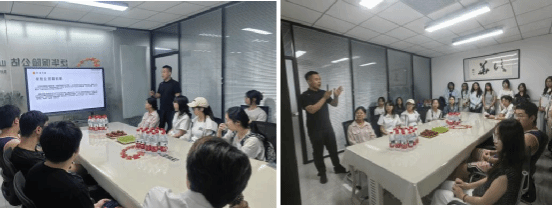 第二阶段于2025 年 7 月 2 日上午采用“走出去 ”的方式进行, 由两名教师带领22 名学生前往泛华保险公估股份有限公司进行参观学习。泛华保险公估公司综合部负责人孙莉带领同学们参观了公司的工作环境,医健险杨宇航经理给同学们讲解了公估行业的工作流程以及泛华保险公估公司