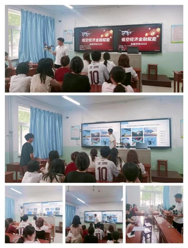 智慧低空为经济发展赋能“请进来”集中实践环节:6月30日上午在立信楼105教室线上线下同步举行。活动特邀山西迅飞无人机科技有限公司技术专家、民航局资深从业者等行业领军人物,围绕“无人机行业前沿与CAAC执照价值”“低空经济法规政策与金融创新”等主题展开研讨。现场设置无人机实物讲解、模拟飞行体验等环节,学生就“知识产权证券化在无人机产业的应用”“低空经济保险产品设计”等问题与专家深度互动,提出10个兼具专业性与创新性的问题,形成《低空经济金融需求图谱》初步成果。
