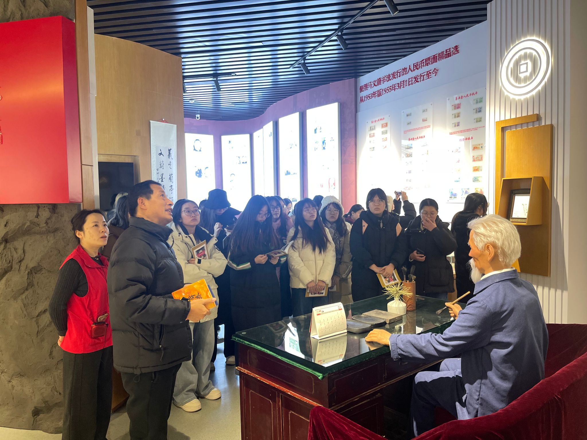 2026年1月19—20日,太阳集团tyc151cc开展了“红色金融”小学期活动。共有近三十名学生参加了此次活动。本次活动共由两阶段组成,第一阶段活动是“请进来”。经我院张亚兰老师接洽,请到了马文蔚纪念馆馆长史志刚先生。史馆长介绍了他的金融文物收藏、马文蔚纪念馆落成的过程,及相关红色金融历史。讲座详细介绍了马文蔚先生作为一个红色金融人一生的坎坷和追求,以及为人民币题字,并形成“央行体”的事迹。期间,史馆长提供了他多年收藏的金融文物,学生饶有兴趣地上前围观。张宏彦、毛成刚老师组织、参加了“请进来”活动,张宏彦对本次活动做了总体介绍,毛成刚对活动意义和具体内容做了进一步的解读。