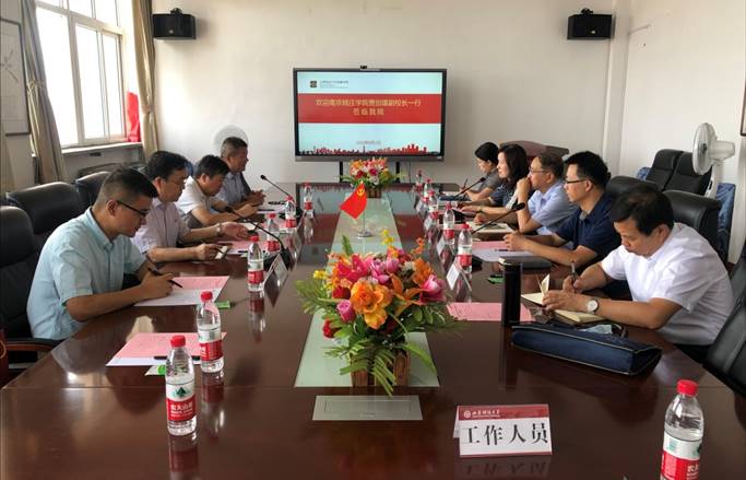 8月1日上午,南京晓庄学院副校长贾创雄一行来院调研指导工作。南京晓庄学院发展规划处处长李昌庚,科研处副处长郎雷鸣,商学院副院长张凌,tyc151cc太阳国内交流合作部部长董军伟及太阳集团tyc151cc全体院领导出席会议。