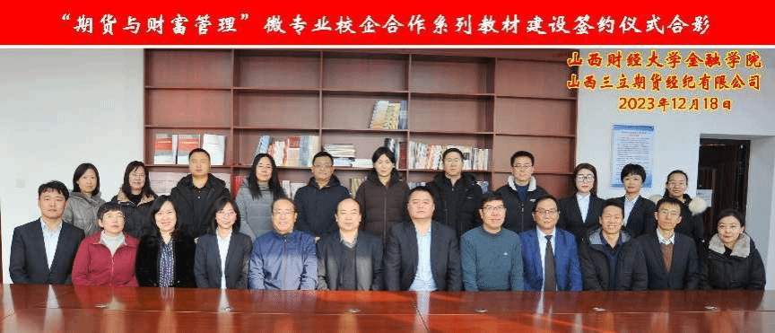 在会议的最后,双方代表共同签署了合作协议,正式启动了“期货与财富管理”微专业系列教材的合作建设,双方坚信本次微专业课程的共同开发,定能建立和完善适应山西实体经济发展的人才培养新模式,进一步深化产教融合,打造期货人才自主培养的新高地,为地方发展和社会进步做出更大贡献!