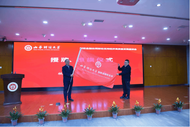党委常委、副校长米子川为财政金融校友会授牌、授旗。