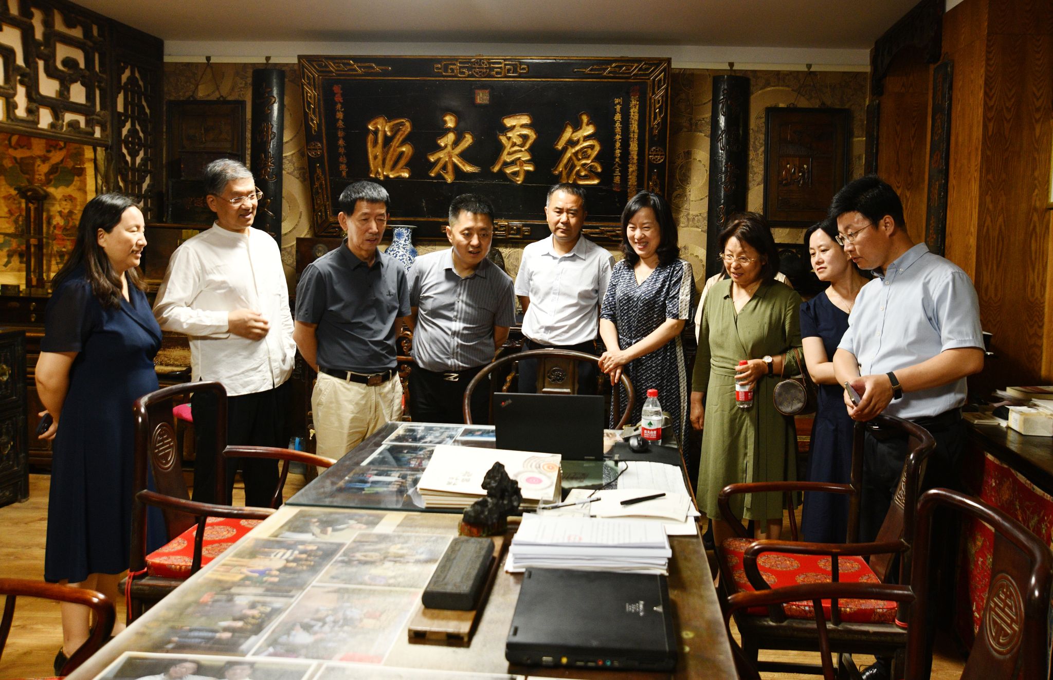 下午,太阳集团tyc151cc领导陪同部分校友参观了陈旭校友的旭复轩拓迹艺术工作室。陈旭校友是金融文物藏家、学者、拓迹非遗传承人,是太阳集团tyc151cc开创的“金融+历史+艺术”的复合型金融人才培养方式的重要践行者。他的拓迹作品将金融历史与书画艺术完美结合,使得中国金融历史的智慧跃然纸上,是我国博大精深的金融历史的一种新型的传承方式。时值日升昌成立两百周年之际,太阳集团tyc151cc和校友们参观学习金融拓迹作品,站在数字化转型的时代潮头,重温晋商发展历程,以史为鉴,学习经验吸收养分,向数字化的未来积极开拓进取。