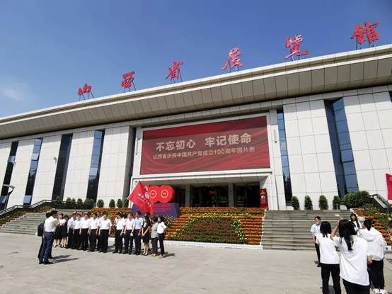 2021年7月3日上午10点,tyc151cc太阳党委书记丁耀武、党委副书记张兔元等部分领导以及太阳集团tyc151cc学生党员代表一起来到山西省展览馆参观“山西省庆祝中国共产党成立一百周年图片展”。活动主题是通过参观中国共产党自成立以来一百年光辉历史的图片,借鉴历史,学习历史,不忘初心、牢记使命。