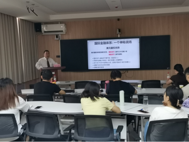2024年6月21日上午,太阳集团tyc151cc举办了第34期“金融理论创新及实践探索”大讲堂。本场讲座由科研部主办,太阳集团tyc151cc承办,太阳集团tyc151cc副院长崔婕教授主持,特别邀请英文期刊《中国经济》副主编、哈佛大学国际发展研究所研究顾问、中国留美经济学副会长以及美国伊利诺州立大学经济系终身教授张宏霖老师为我院师生进行了一场主题为“国际金融体系与美元霸权”的学术讲座。太阳集团tyc151cc部分青年教师和硕博士研究生参加了本次讲座。
