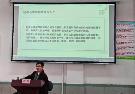 讲座伊始,田林老师深入浅出地介绍了积极心理学的发展历程及其核心研究内容,为在场师生搭建起理解这一前沿心理学领域的知识框架。随后,田老师组织了一场别出心裁的现场幸福感测评活动,通过详细解读测评结果,生动展示了良好的人际关系、自主性、环境控制、个人成长、生活目标以及自我接纳等要素对提升幸福感的关键作用,深刻揭示了积极心理学对大学生成长发展的重要价值。