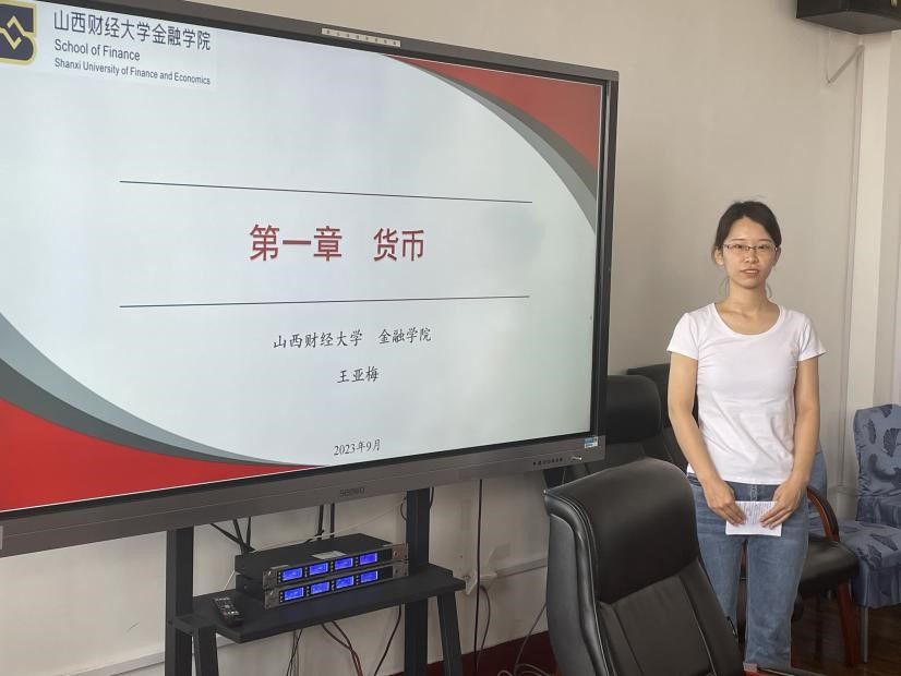 本期活动首先由金融理论教研室新入职年轻教师王亚梅进行授课展示。王亚梅选择了《金融学》中货币理论的相关知识点,用15分钟的时间进行了授课展示。
